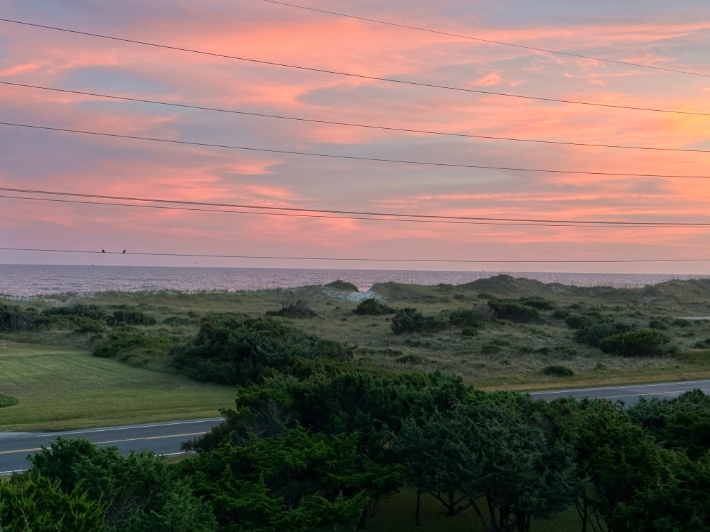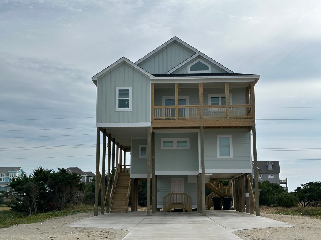 This gorgeous beach home was built in 2023 on a unique, narrow section of Hatteras Island that is one row back from BOTH the beach and the sound. Our street is one of only a few places on the Outer Banks with access to both! Sugar dunes and cotton candy skies are just the cherry on top of this unique location – it’s truly the sweetest spot on the island!